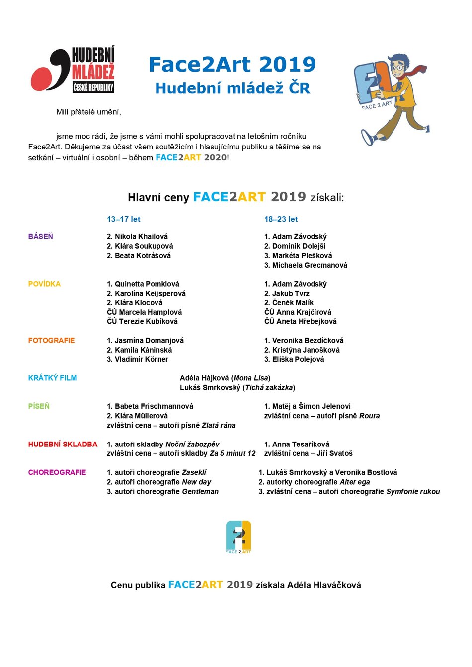 Výsledkovou listinu si můžete prohlédnout na fotografiích vpravo na webu www.face2art.cz