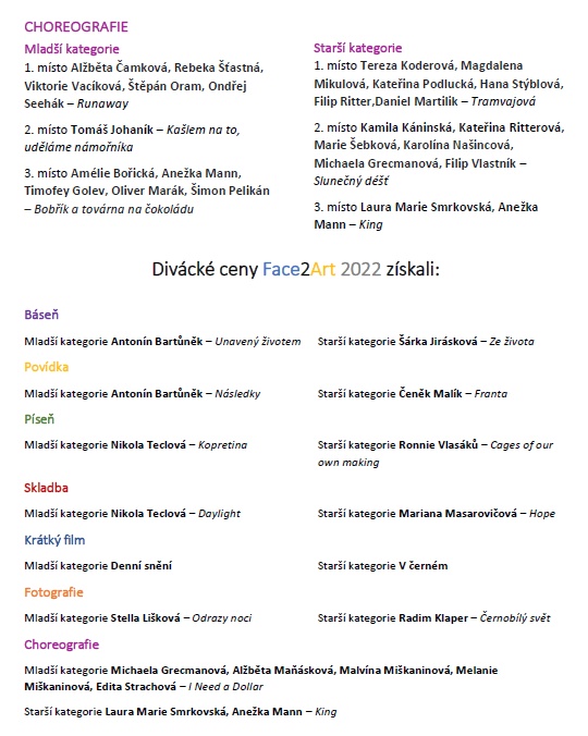 Výsledky 13. ročníku soutěže Face2Art