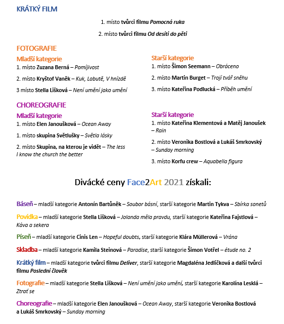 Výsledky Face2Art 2021